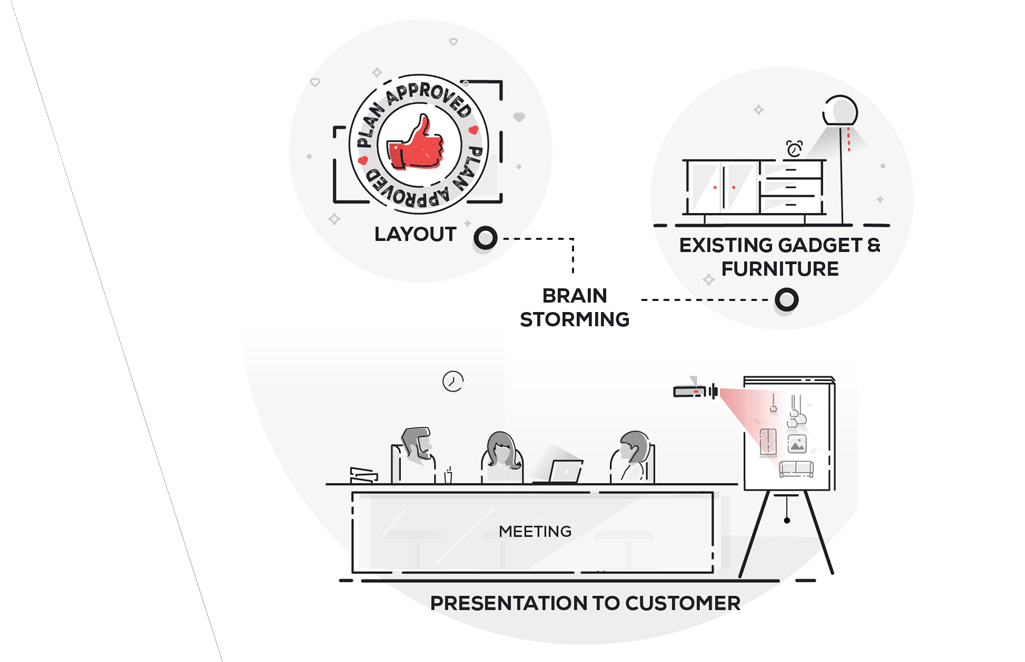 - We start the incredible journey of designing a space for you by understanding you and your requirements.